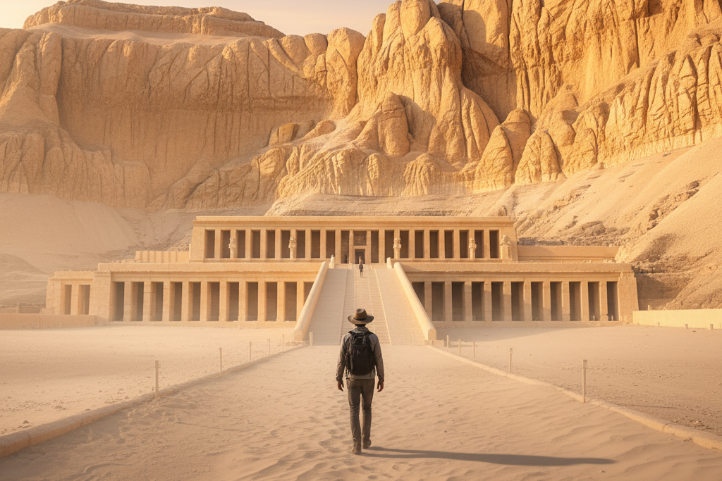 Follow the footsteps of Egypt’s powerful queen through majestic temples, mountain views, and timeless stories.